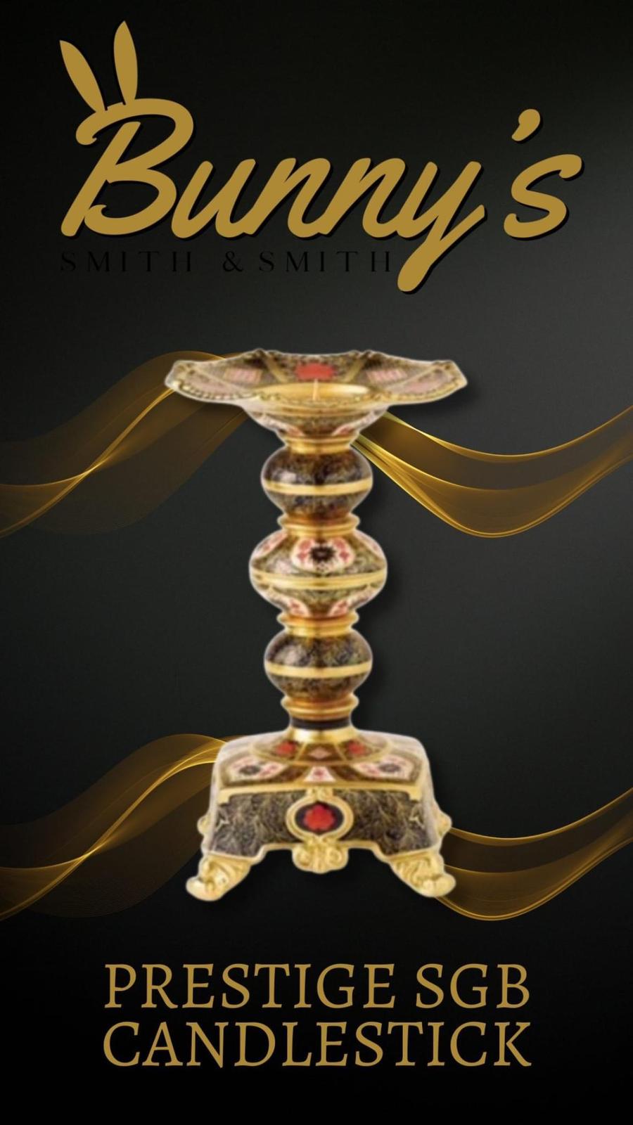 This impressive Old Imari Solid Gold Band Prestige Candlestick is a exquitise statement picec standing a full 30cm high. It will add a regal touch to your dinng room and features a heavily adorned 22 carat gold Old Imari Solid Gold Band pattern
