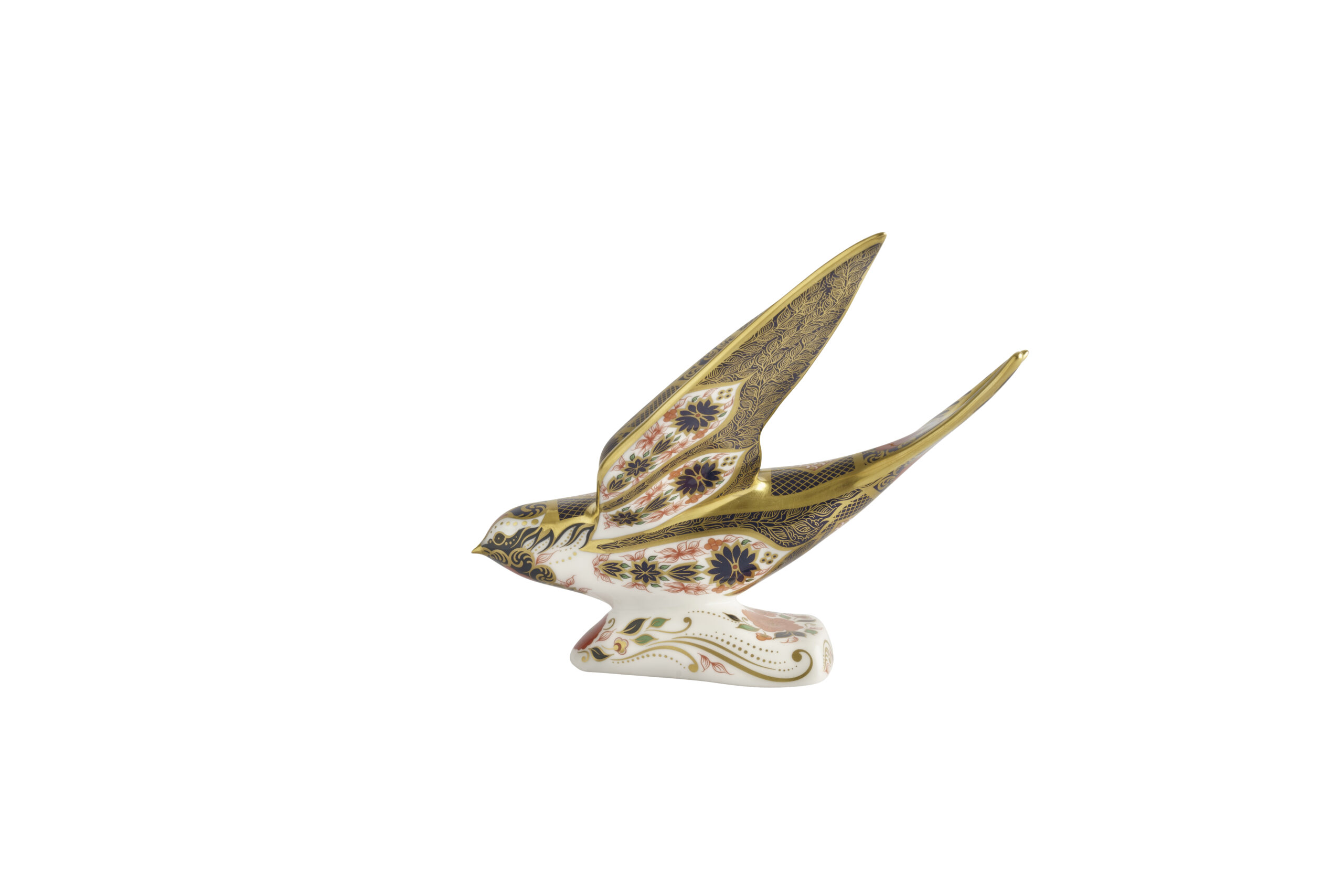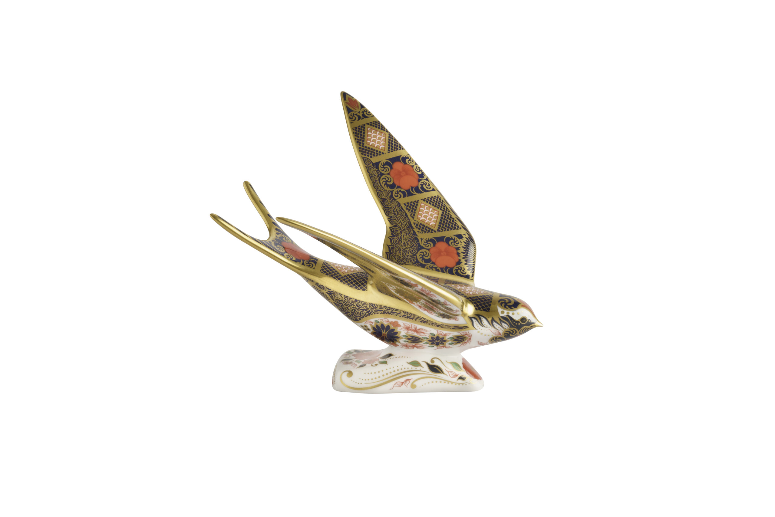 This dramatic swooping Swallow is adorned with the iconic Imari pattern, featuring vibrant colours and intricate details that reflect the rich heritage of Royal Crown Derby.