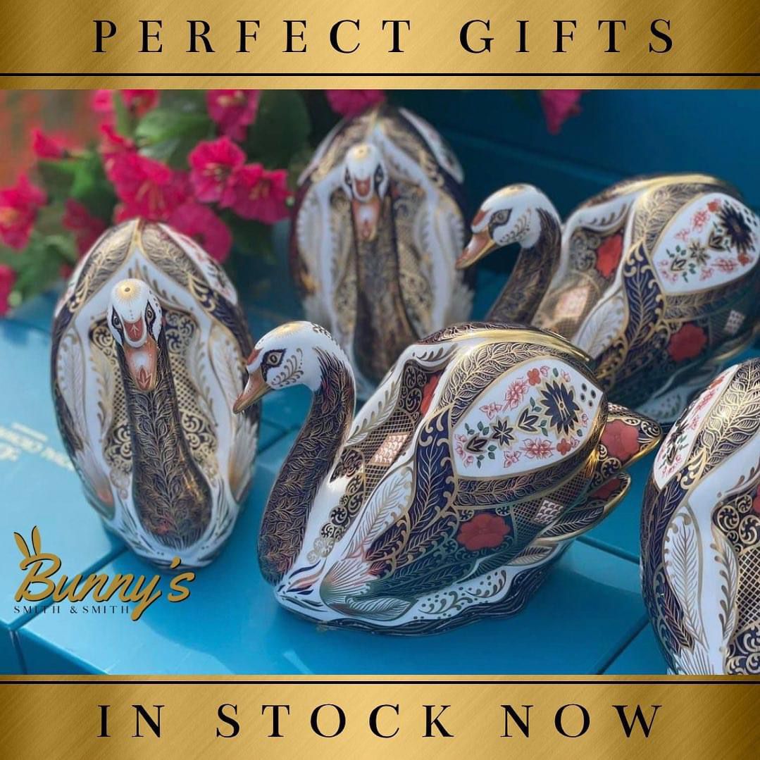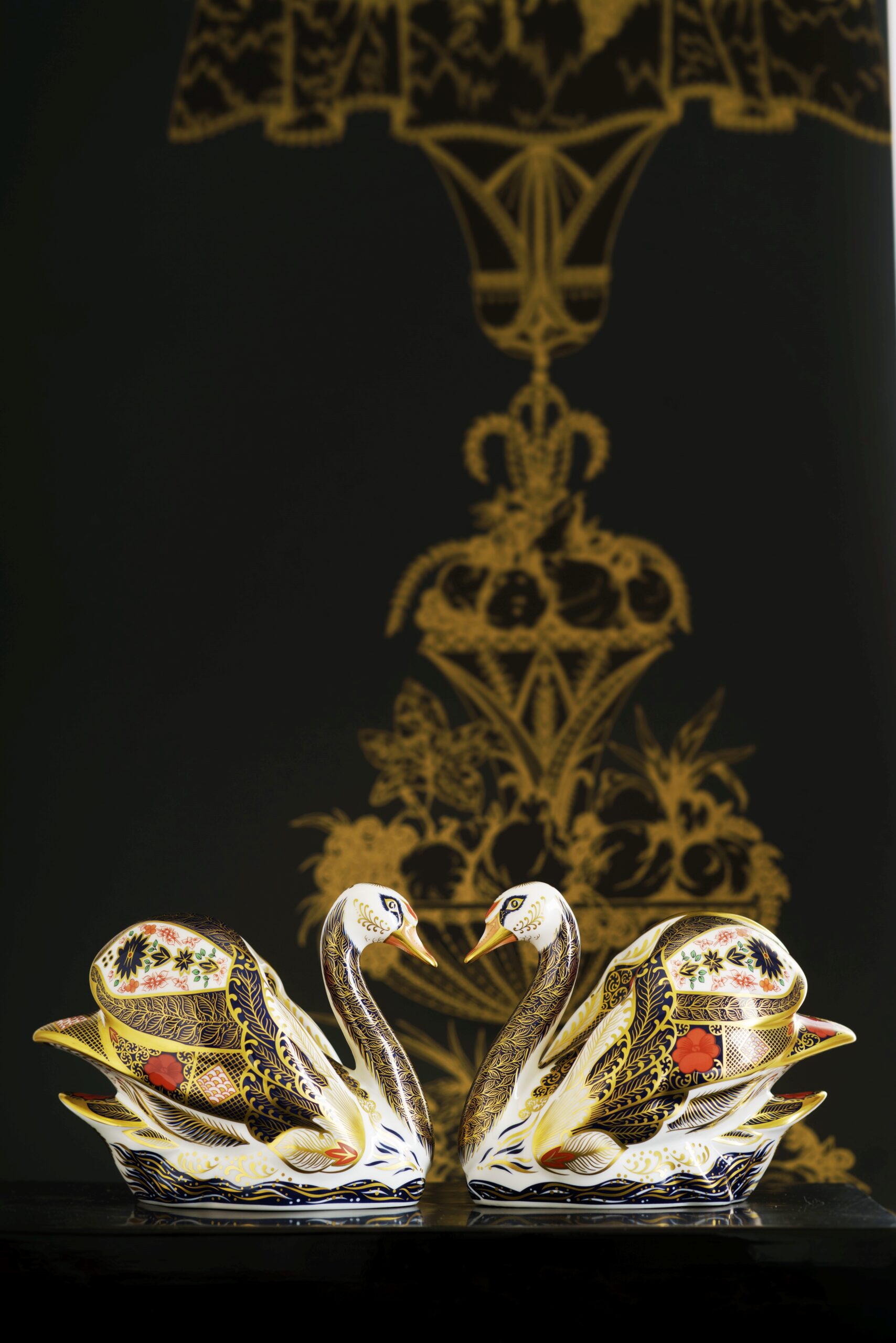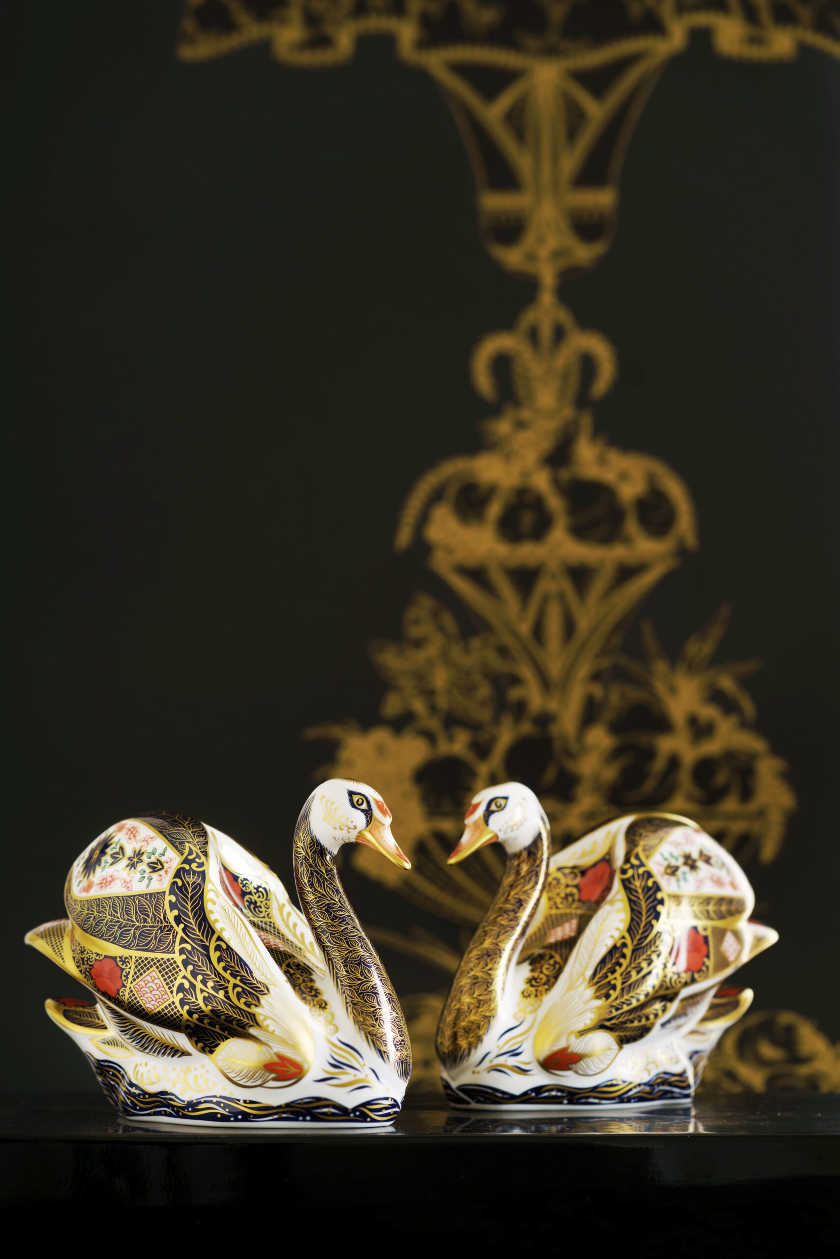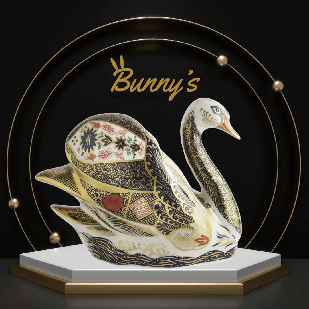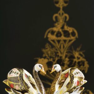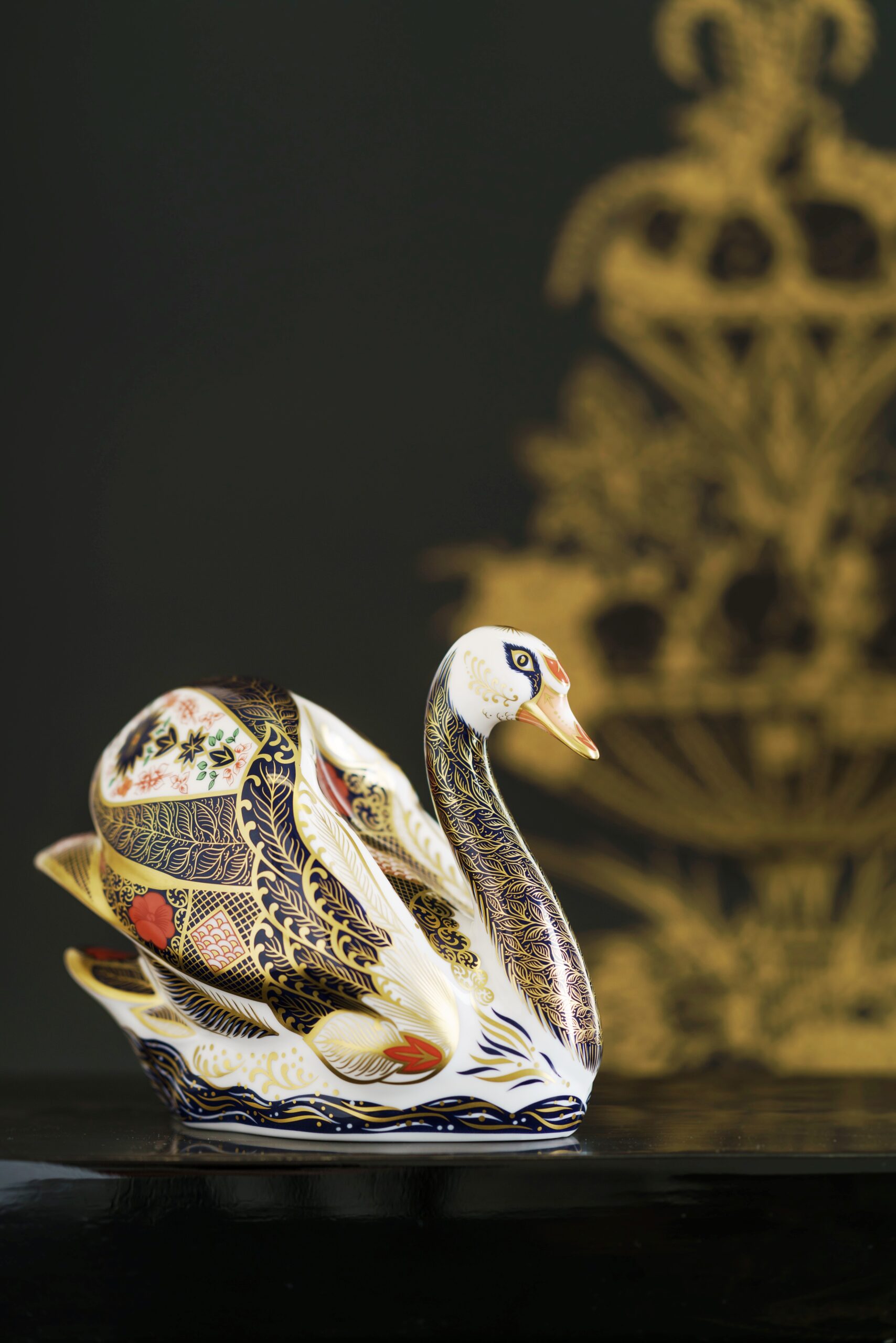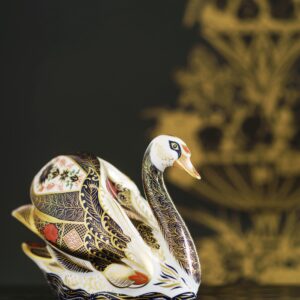 This beautiful and vibrant Old Imari Solid Gold Band Swan is a must to add to your Royal Crown Derby Giftware Collection. This stunning swan is a striking symbol of beauty and love and gleams in the rich hues of Derby red and cobalt blue, further enhanced by intricate 22-carat gold detailing, making this piece an embodiment of the heritage and timeless design of the Old Imari pattern.
